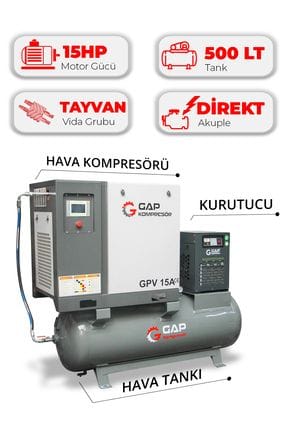 Hava Kompresörü Depo Üstü İnvertörlü Vidalı 15Hp 500Lt GPV15E adet